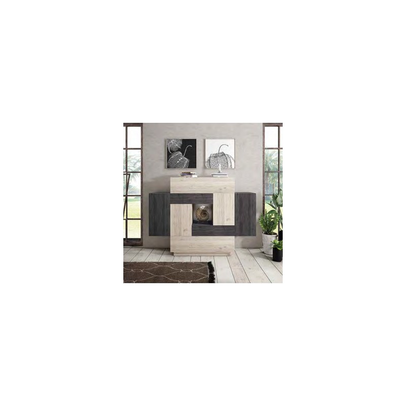 Aparador de 131 x 175 x 35cm en color Ártico / Azabache